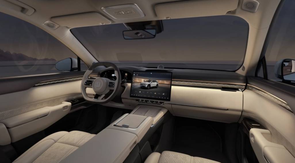 车内搭载 16 英寸大尺寸 OLED 中控娱乐屏和 36 英寸增强现实抬头显示系统(AR-HUD),强化高端品牌定位。为后排乘客打造的 13 英寸 2.5K OLED 娱乐屏布置于前排座椅靠背,全车座椅均采用带加热、通风及按摩功能的纳帕真皮座椅。
